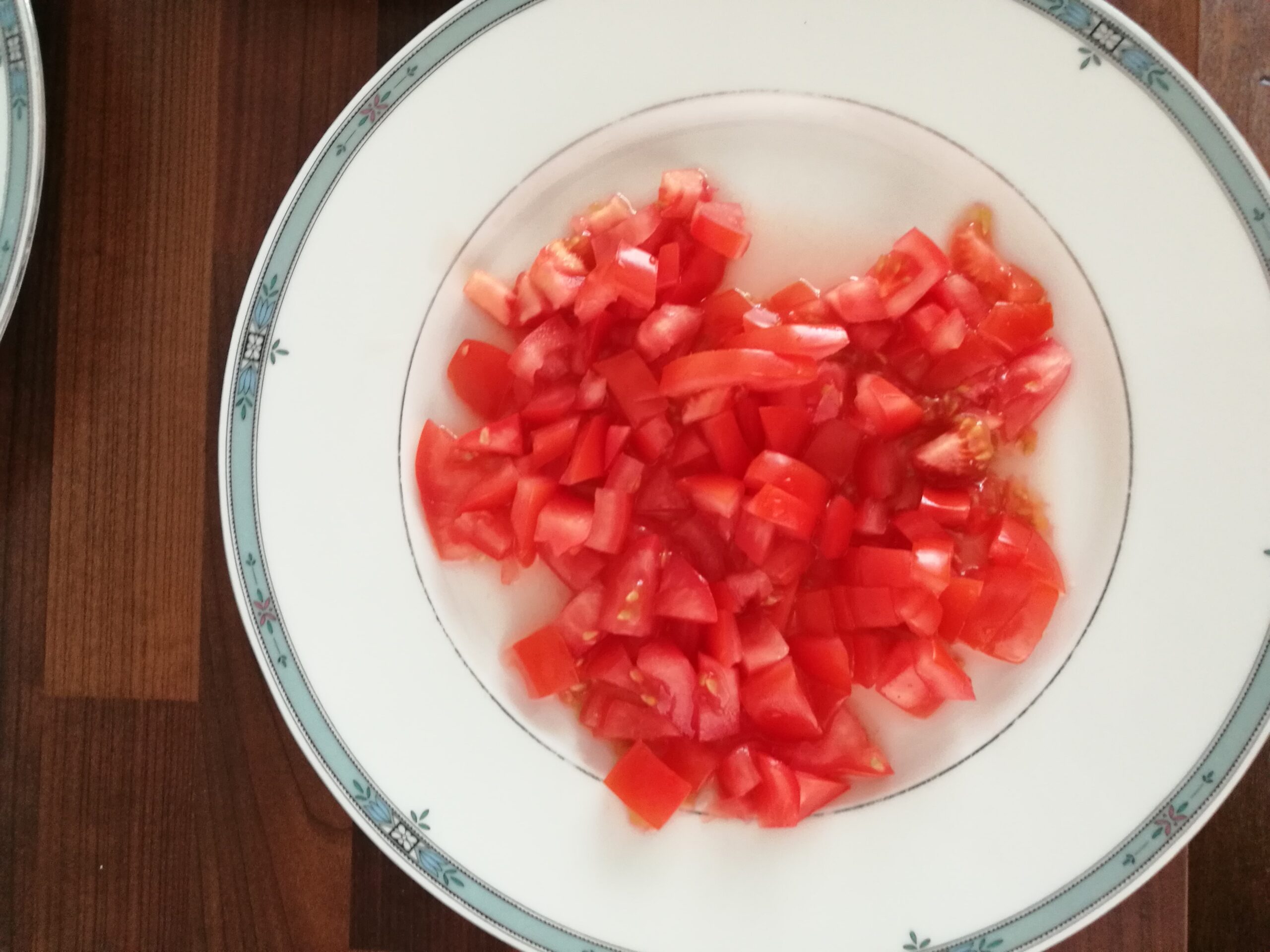 - drei kleingeschnittene Tomaten
