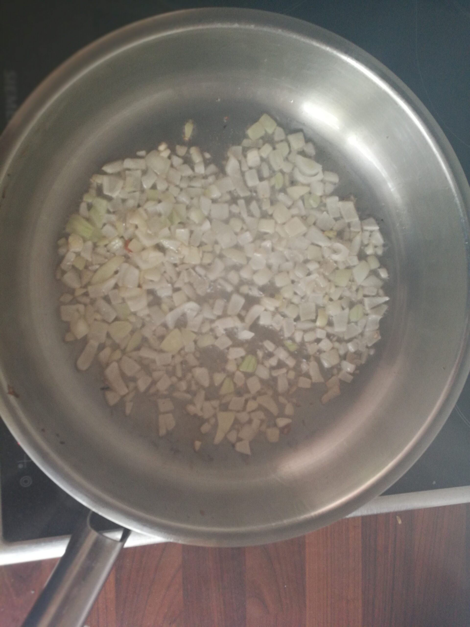 schön glasig anbraten.Nach ca 3 Minuten